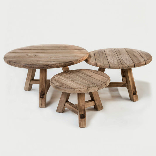 Anton Reclaimed Wood Round Coffee Tables, Set of 3