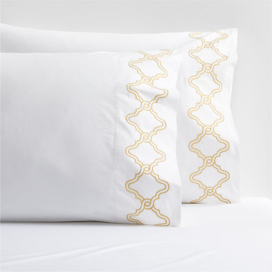 Yellow Modern Embroidered Tile Percale Sheet Set