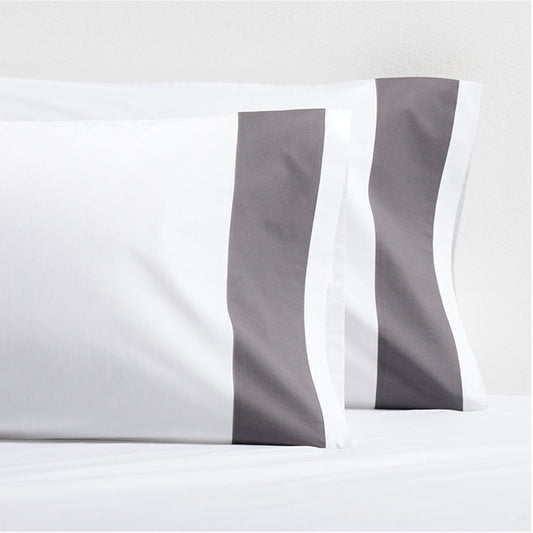 Dark Grey Wide-Band Percale Pillowcases, set of 2