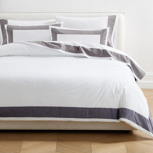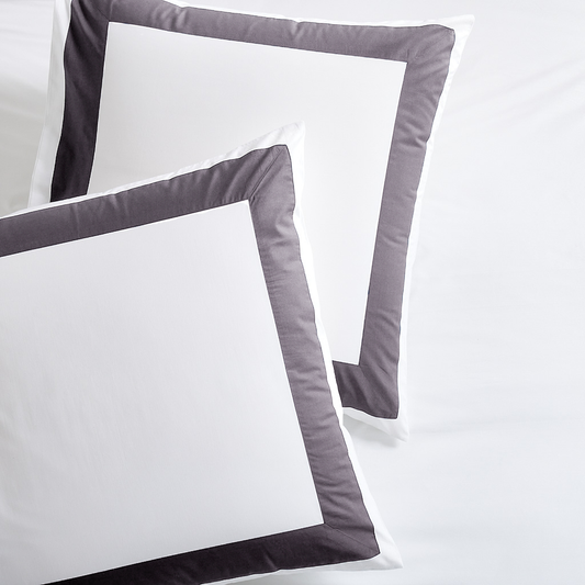 Dark Grey Wide-Band Percale Pillow Shams, Set of 2
