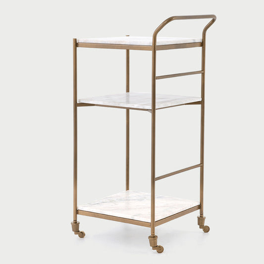 Felix Antique Brass and White Marble Rectangular Bar Cart