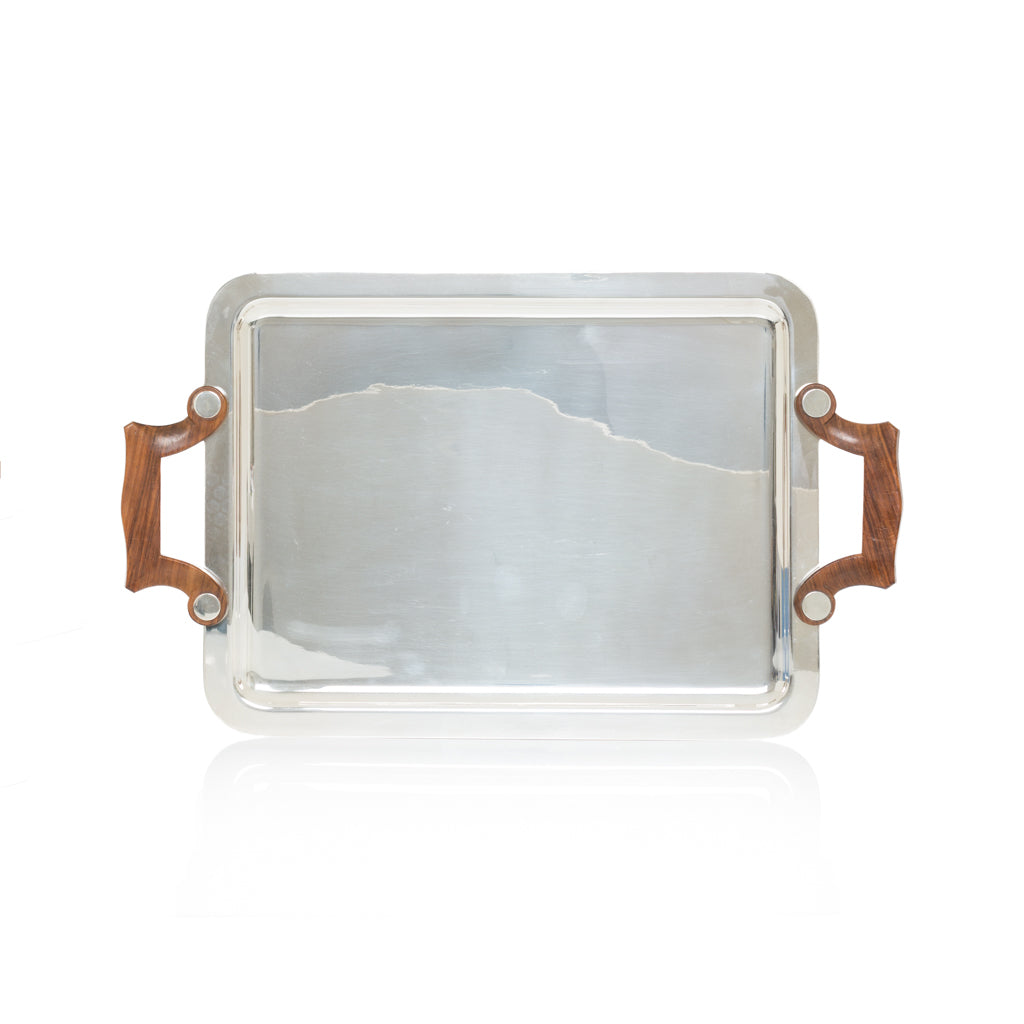 Worthy of a dedicated silver collector, this elegant, deco styled tray is truly a unique find . Excellent condition . 17” x 13” x 1”