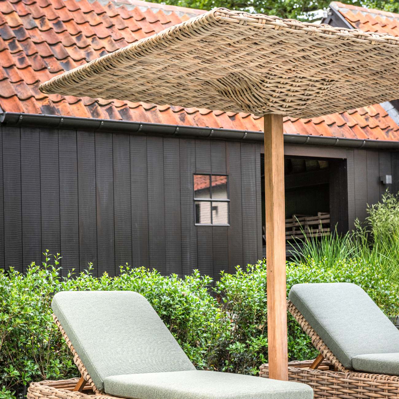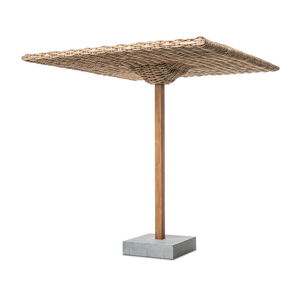 The parasol Yasmin is a statement piece in itself. The phenomenal design combines natural wicker, teak and concrete into a modern and functional sculpture. Combine with the matching Jones Sun Lounger to complete the look.