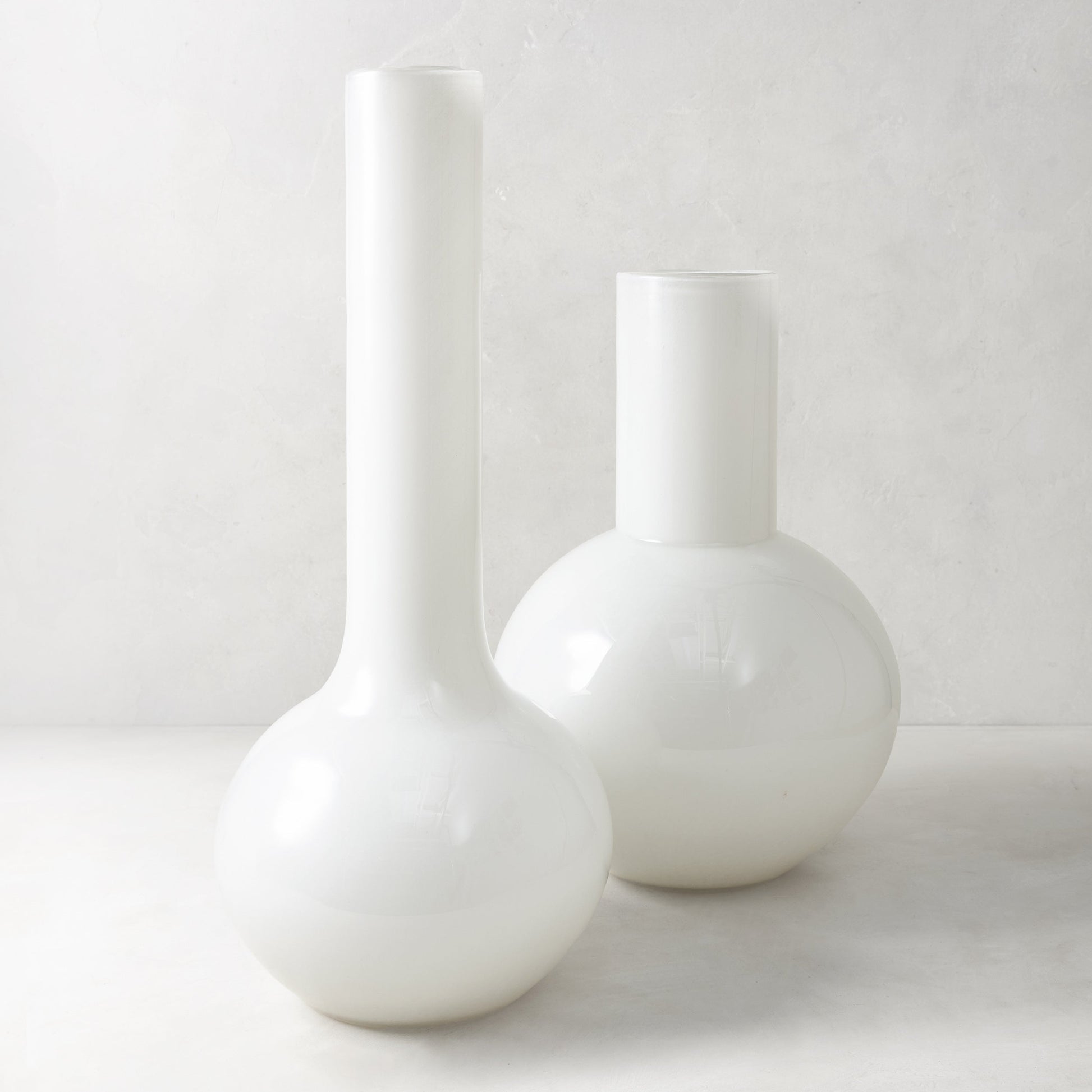 Handblown in Europe, our stunning opaque White Grando Vase comes in a new oversized silhouette—perfect for holding a variety of your favorite blooms.