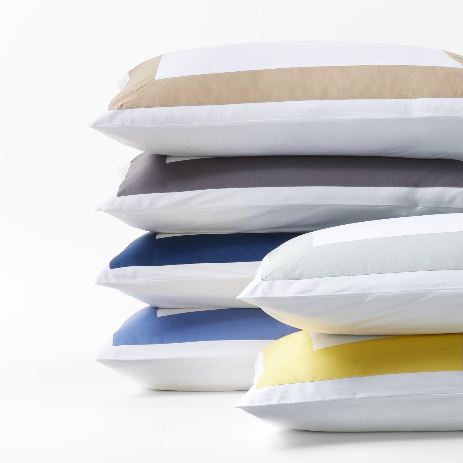 Bold and classic, our Italian Percale Wide-Band Collection takes a cue from the bedding we found in the finest European boutiques and hotels. The Yellow Wide-Band Percale Pillow Shams are cool and crisp, soften with wash and use, and are the perfect way to tuck into luxury every night. They are woven from extra-long staple cotton in a 500-thread-count percale with an appliqued 4” wide band. The tailoring and wide-band detail in a sophisticated color palette makes this a versatile collection that layers easily with other bedding and interior style.